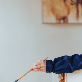 Christen with her paintings and her dog were shot by Ashley Fan. You can find her work at https://www.instagram.com/photosbyafan/