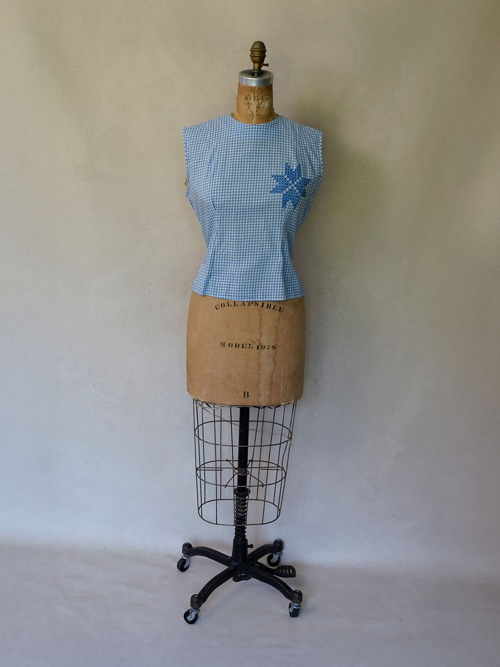 1970's striped peasant top with ties at neck and optional tie around waist.